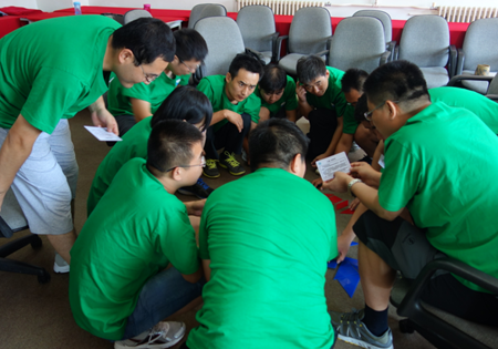 拓展活動中參訓家人分成兩只PK隊伍,通過組建團隊、設定隊名、選隊長、畫LOGO、喊隊訓,大家迅速形成團隊榮譽感,在接下來的齊眉棍、七巧板、數碼風暴、野外CS等活動中,兩只隊伍實力不相上下,各有千秋。