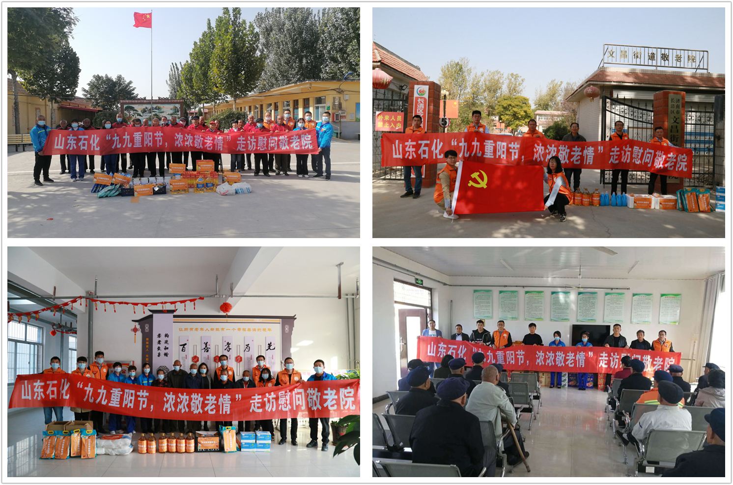 (2019年 “山東石化”騰訊99公益日活動走訪慰問:傳統(tǒng)節(jié)日走訪慰問敬老院,為老人送去過節(jié)物資和節(jié)日祝福;日常不定期走訪慰問孤困老人,查看孤困老人生活和身體狀況,陪伴老人,送去生活和過節(jié)物資,給予老人關(guān)愛和陪伴;鼓勵引導(dǎo)志愿者主動參與孤老照護活動和自發(fā)照護孤困老人,激勵志愿者積極參與公益活動等。