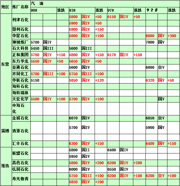 2015年2月13日山東地煉汽油價格