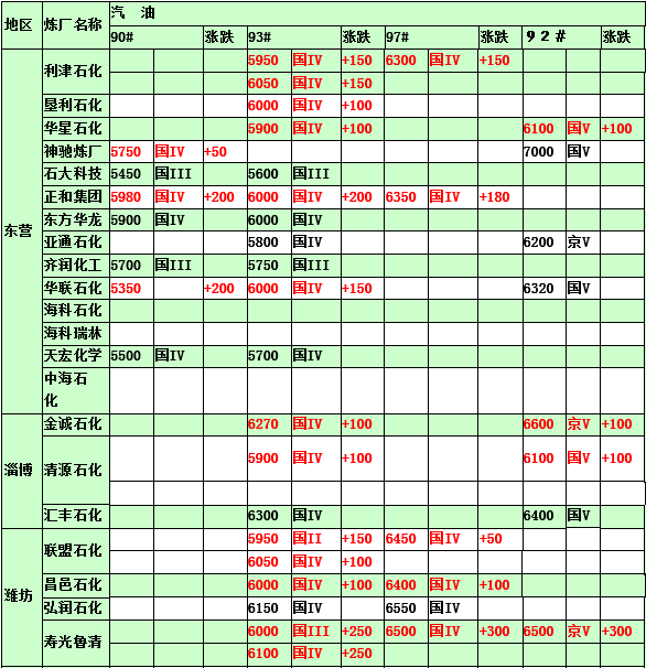 2015年2月14日山東地煉汽油價格