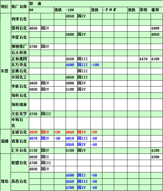 2015年3月16日山東地煉汽油價格