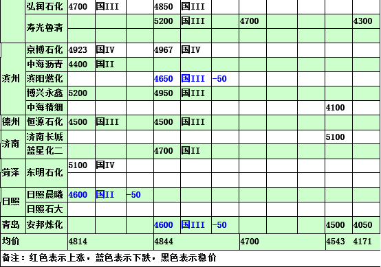 2015年3月17日山東地煉汽油價格