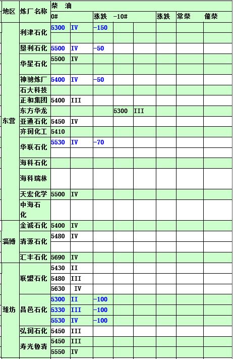 2015年5月12日山東地煉柴油價格