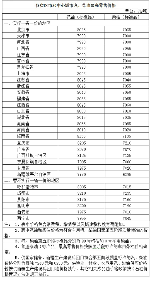 按照現(xiàn)行成品油價格形成機制,自2018年12月28日24時起,國內(nèi)汽、柴油價格(標(biāo)準(zhǔn)品,下同)每噸分別降低370元和355元。相關(guān)價格聯(lián)動及補貼政策按現(xiàn)行規(guī)定執(zhí)行。