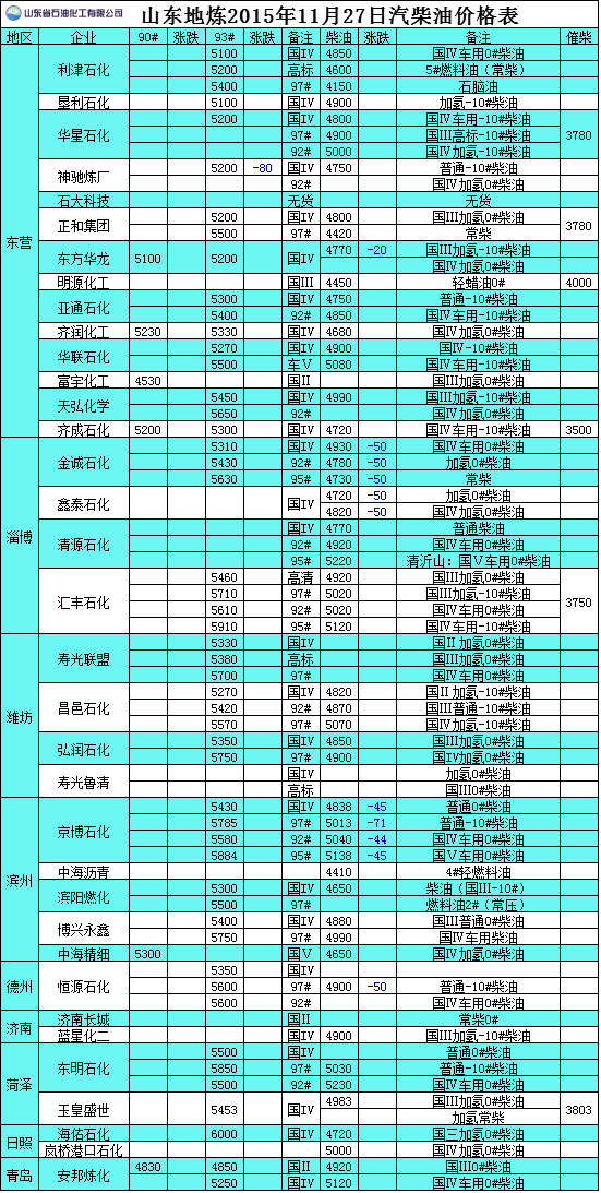 2015年11月27日山東地?zé)捚裼蛢r格表