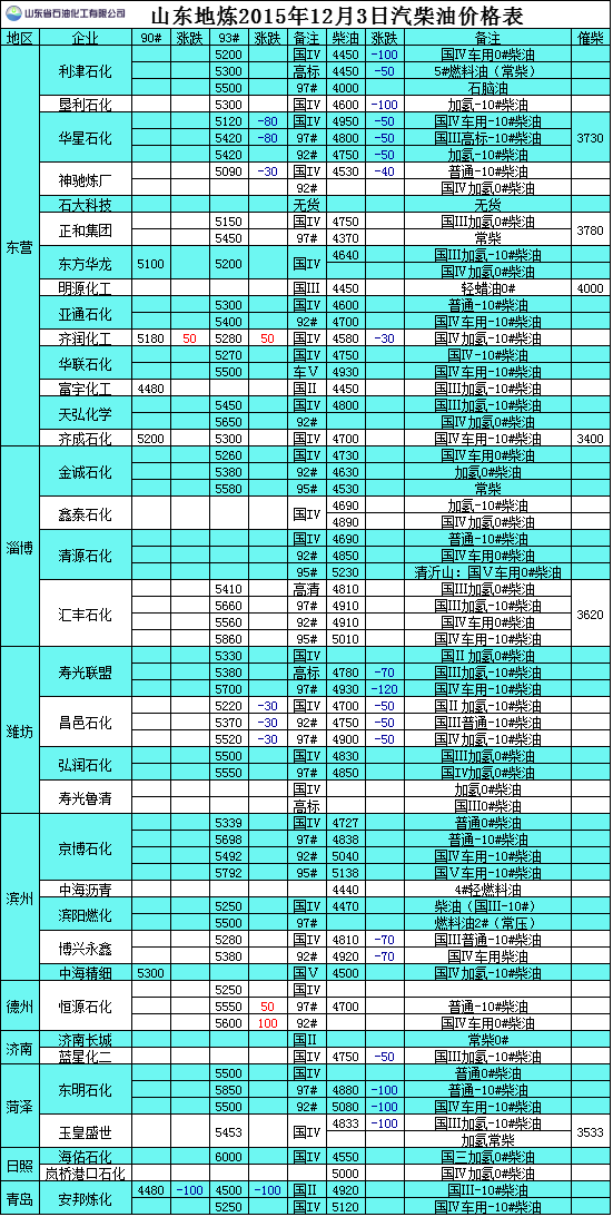 2015年12月3日山東地?zé)捚裼蛢r(jià)格表