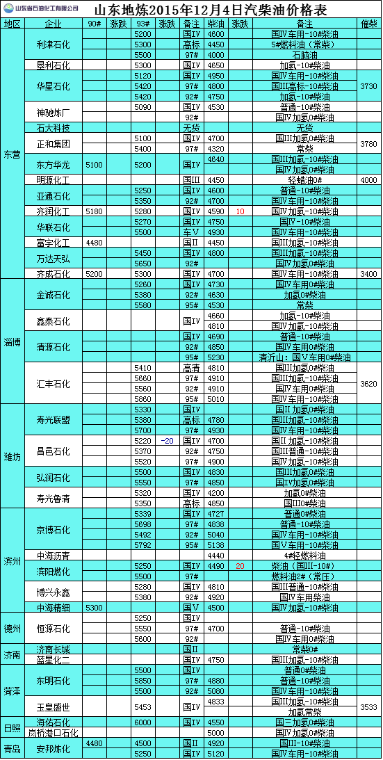 2015年12月4日山東地?zé)捚裼蛢r(jià)格表