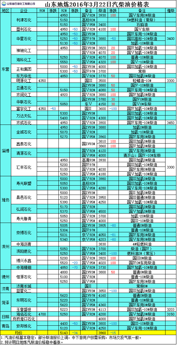 2016年3月22日山東地?zé)捚裼蛢r(jià)格表