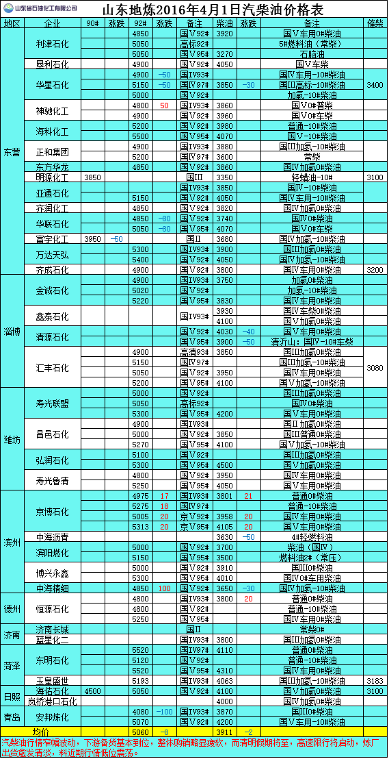 2016年4月1日山東地?zé)捚裼蛢r(jià)格表