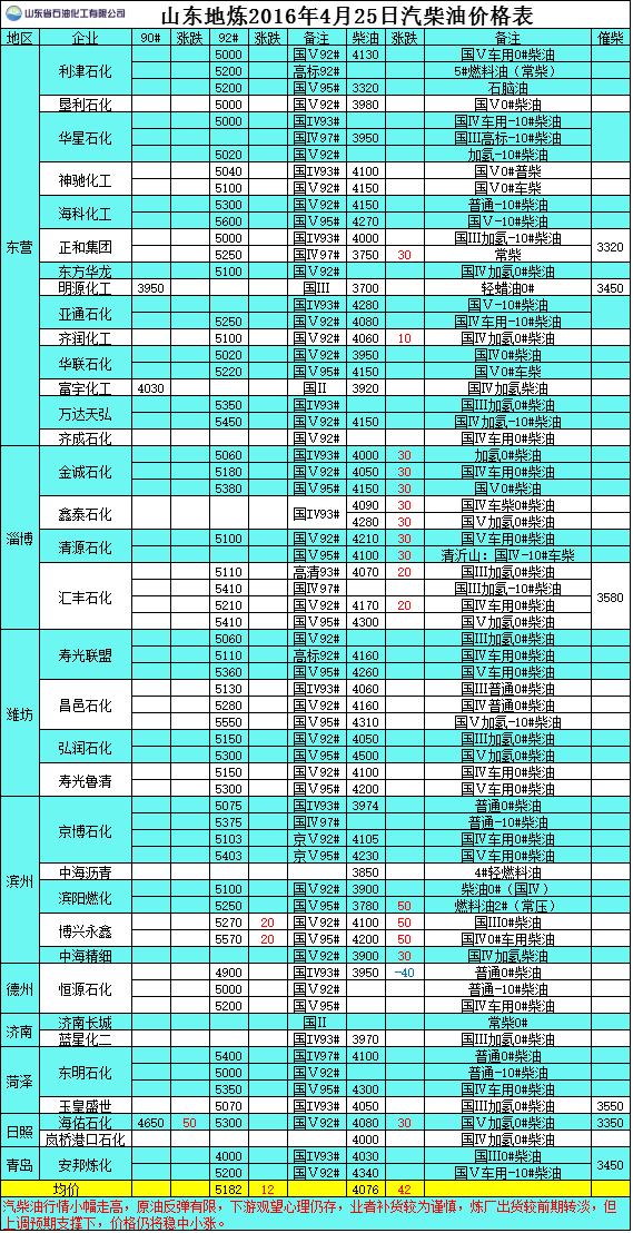 2016年4月25日山東地?zé)捚裼蛢r(jià)格表