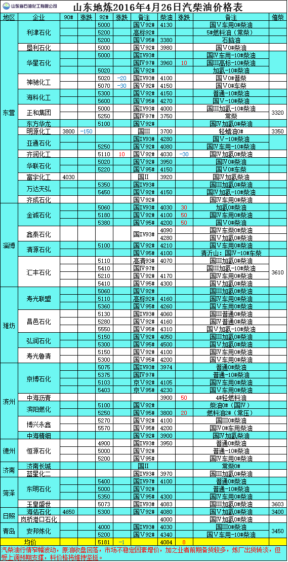 2016年4月26日山東地?zé)捚裼蛢r(jià)格表