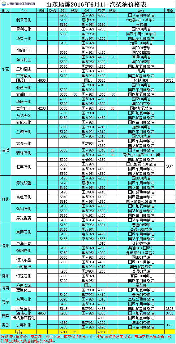 2016年6月1日山東地?zé)捚裼蛢r格表