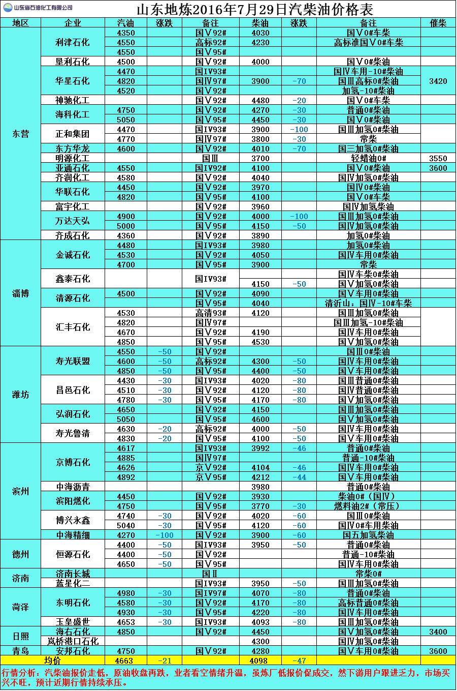 行情分析:汽柴油報價走低,原油收盤再跌,業(yè)者看空情緒升溫,雖煉廠低報價促成交,然下游用戶跟進(jìn)乏力,市場買興不旺,預(yù)計近期行情持續(xù)承壓。