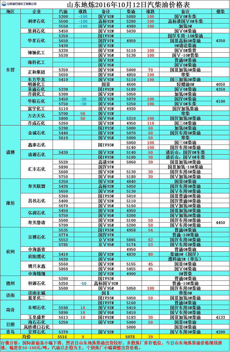 行情分析:國際原油雖小幅下滑,然近日山東地煉柴油出貨較好,多數(shù)煉廠庫存低位,今日山東地煉柴油價格繼續(xù)推漲,幅度在50-100元/噸。汽油以走穩(wěn)為主,個別煉廠小幅調(diào)整出貨價格。