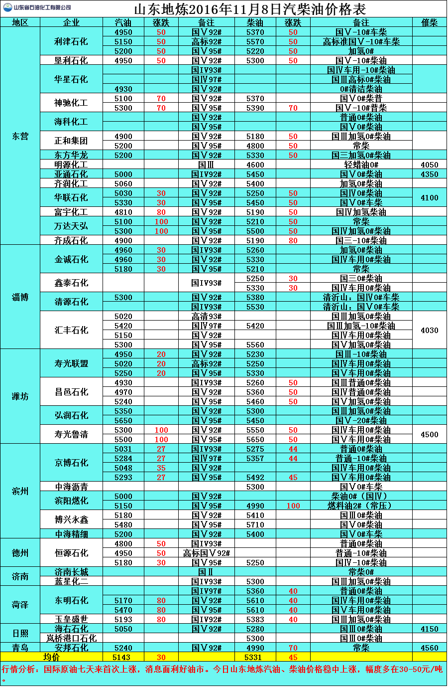 行情分析:國(guó)際原油七天來(lái)首次上漲,消息面利好油市。今日山東地?zé)捚?、柴油價(jià)格穩(wěn)中上漲,幅度多在30-50元/噸。