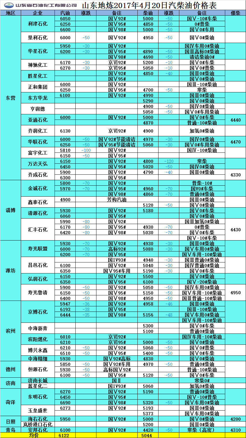 2017年4月20日山東地?zé)捚裼蛢r(jià)格