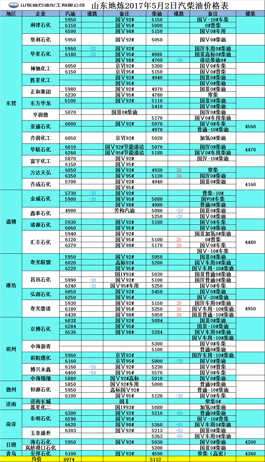 2017年5月2日山東地?zé)捚裼蛢r(jià)格