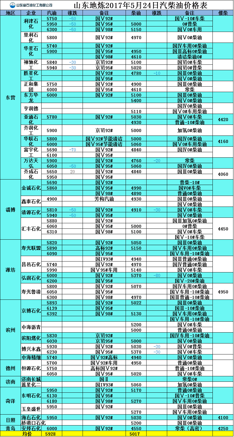 2017年5月24日山東地?zé)捚裼蛢r(jià)格